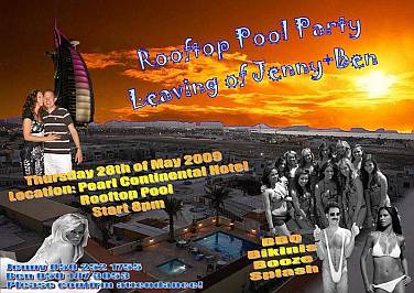 The Leaving Party ... Ben decided to go back to Germany for job reasons, and of course Jenny had to come along. A great Leaving Party with all dear lovely friends was arranged at the rooftop pool of the Pearl Continental Hotel in Dubai - of course without any alcohol ...