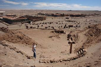 Nachdem wir endlich den richtigen Bus gefunden und einige Diskussionen um den korekten Preis hinter uns hatten, ging es auf den Weg nach Humberstone - einer verlassenen Geisterstadt in der Wüste östlich von Iquique. Die Stadt wurde 1872 zum Abbau von Salpeter gegründet und im Zuge der Erfindung der künstlichen Herstellung von Salpeter letzendlich 1959 verlassen.