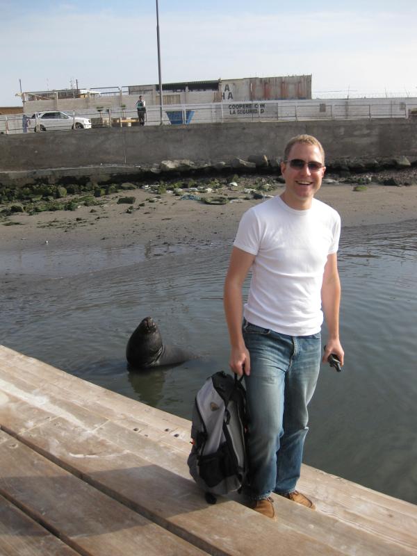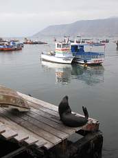 Iquique is a small town with 215,000 people and the captial of the nothern Chile region Tarapaca. The tour guide book says that Iquique is one of the most beautiful cities in Chile, with the histrorical city center around Plaza Prat. We managed to see most of the city within two days, and made a harbour boat cruise on Saturday to the position where the famous Esmeralda ship sank and Admiral Arturo Prat dis not fear death to enter the ship of the enemy. Today the enemies are gone and when coming back from the tour, the biggest adventure are the seals that like to relax on the wooden floors of the small harbour, see photos below.