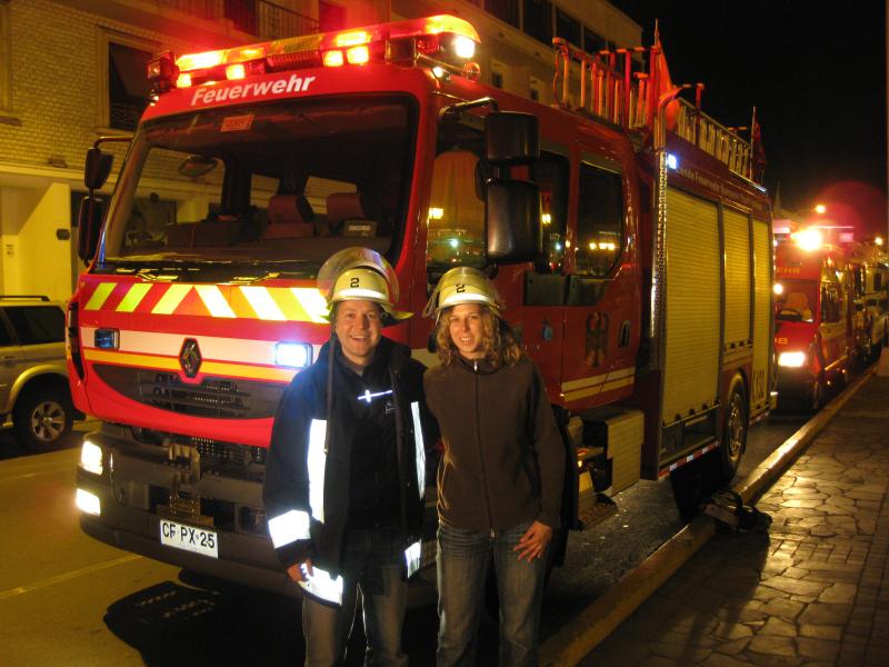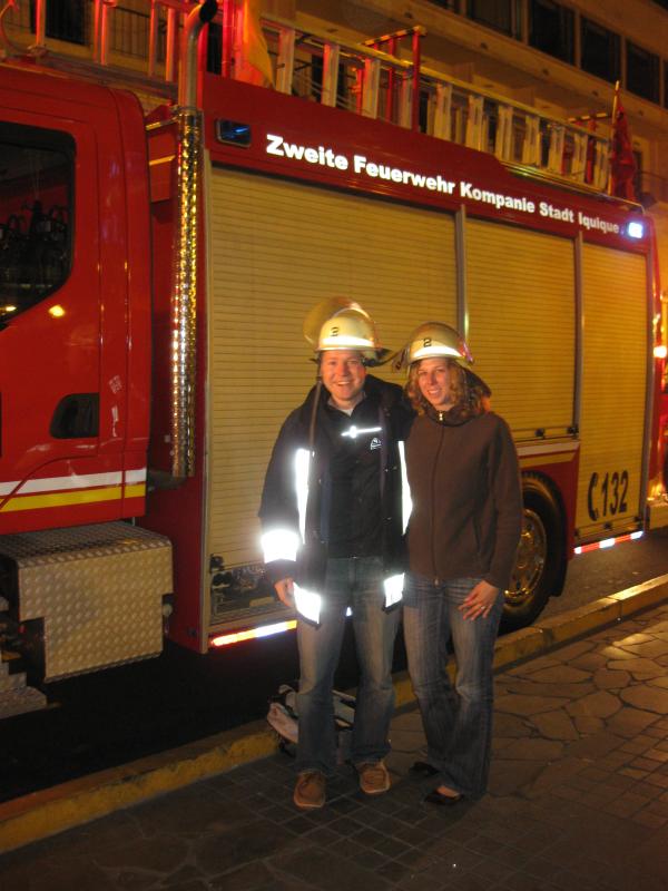 Samstag nacht gingen wir im historischen Restaurant "El Wagon" Essen. Während wir aber noch darauf gewartet haben, dass das Restaurant um 20 Uhr öffnet, stießen wir zufällig auf die 135-Jahr-Feier der Feuerwehr von Iquique. Neben den normalen chilenischen Feuerwehrautos haben wir ein Feuerwehrauto mit vollem DEUTSCHEN Text und Reichsadler darauf entdeckt -wahnsinn!