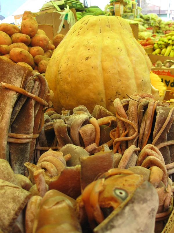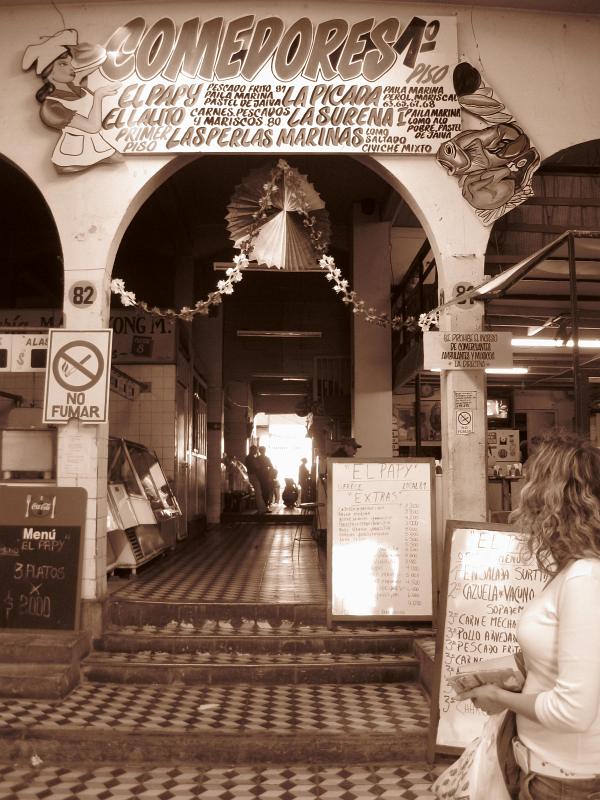 Our Spanish teacher Jorge ("El profesore") gave us the tip to go to the old food market, food is much cheaper there than in the official supermarkets and you can also get lunch at low prices. So why not, hunting for bargains? We went there after our Spanish lessons at noon. However you have to be careful and check the price they ask for- there is the price that locals pay and the "GRINGO PRICE" for tourists. Also ordering food was more than tricky and we hope that our stomach wil cope with this stuff.