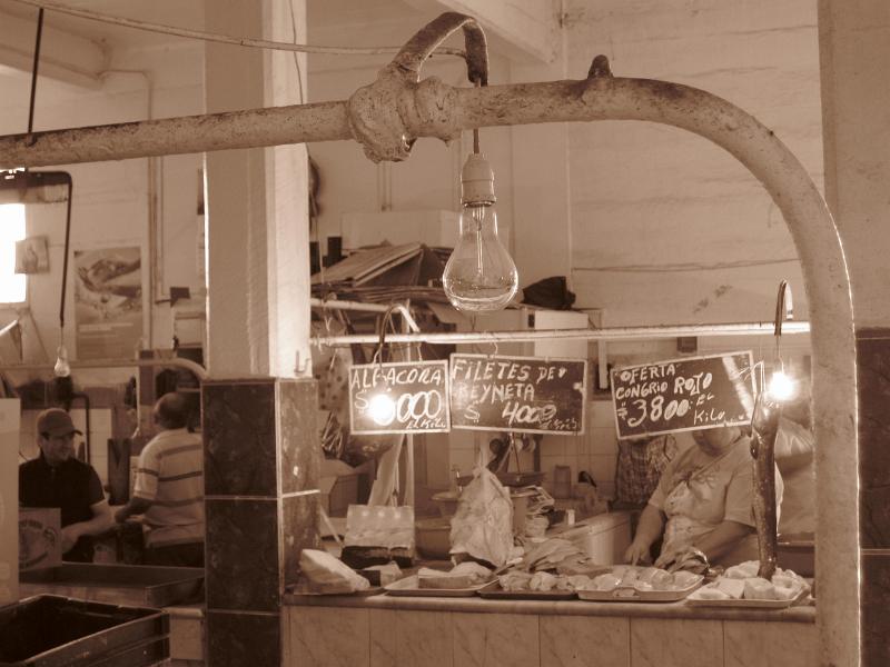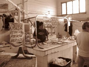 Wir haben von unserem Spanischlehrer, "El profesore" , den Tip bekommen auf dem alten Markt einkaufen zu gehen. Die Lebensmittel dort sind viel billiger als im Supermarkt und günstiges Mittagessen gibt es auch. Warum also nicht mal auf chilenische Schnäppchenjagd gehen?! Mit den Preisen muss man aber vorsichtig sein: Es gibt Preise für Einheimische und für "Gringos", Touristen. Essenbestellen war auch nicht so einfach und wir hoffen mal, dass das Zeug, das wir bekommen haben auch für unsere Mägen ok ist.