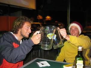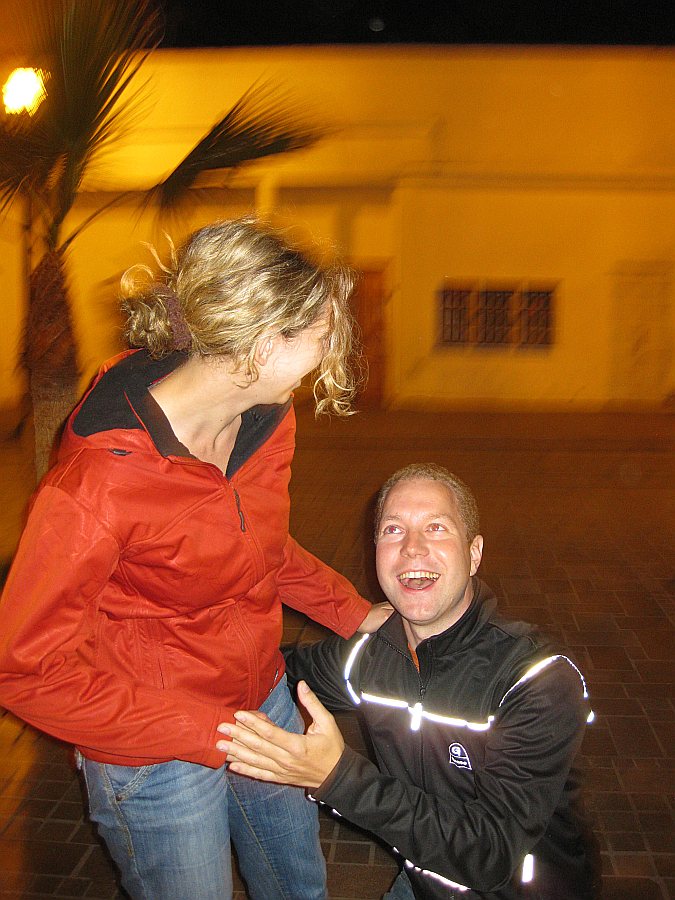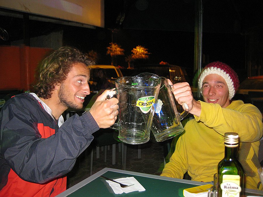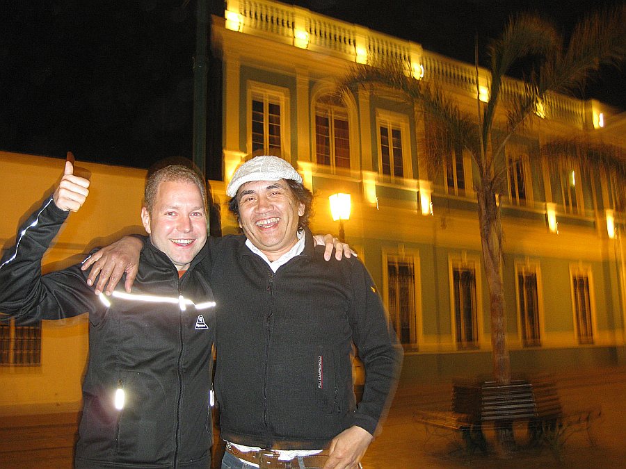 And of course in the night celebrating the arrival of the Jeep and our goodbye from Iquique with our friends Jana, Maria, Michael, Santiago and Queno ...
