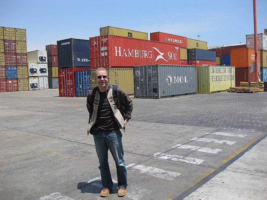 2.5 Wochen nach dem geplanten Ankunftsdatum und nachdem wir fast eine Woche täglich im Hafen waren um den aktuellen Stand zu klären ("manana" , morgen, können wir jetzt nicht mehr hören...), kam das RoRo-Schiff mit unserem Jeep an!!! Wir haben nur einen halben Tag gebraucht, um das Auto rauszurkiegen, obwohl fast keiner Englisch sprach iund unser Spanisch noch lange nicht ausreicht, um mit den Angestellten im Hafen zu diskutieren. Es wurde doch etwas komisch als uns die Angestellten in einem kleinen Transporter aus dem Hafen in ein kleines Export-Büro fuhren, um "Stempel" abzuholen. Nachdem das erledigt war, wurden wir zurück in den Hafen gebracht (puh!) und einer der Angestellten verlangete 50 US$, obwohl wir schon 70US$ an die Transportfirma bezahlt hatten. Weil wir nicht bereit waren nochmal zu bezahlen, fragten wir immer wieder nach einer Rechnung und Zahlungsbestätigung, die wir später bei der Transportfirma einreichen könnten. Weil er weiter auf Zahlung in Cash bestand, haben wir gar kein Spanisch mehr "verstanden". Am Ende schüttelte er jedem die Hand und verabschiedete sich.. :o)