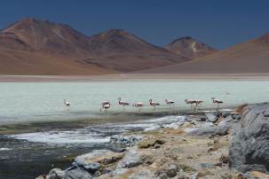Laguna Blanca and Laguna Verde in the Reserva Nacional de Fauna Andina have great views and flamingos.