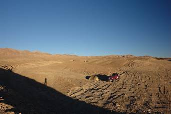 Samstag 30.10.10 - Erste Nacht in der Wüste - und der Jeep springt am nächsten Morgen nicht an !!! Anschieben im Schotter und ein langer Tag in Calama ...