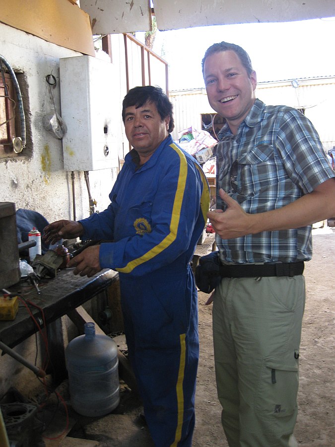 Die nächste Werkstatt war also unsere, obwohl das auch noch mal ein längerer Prozess war... Immerhin war es ja Samstagnachmittag. Wir checkten in einem Hotel ein und schafften es das Auto reparieren zu lassen. Puh! Der nette Herr in der Werkstatt baute den Anlasser auseinander und reparierte ihn zwei Stunden lang und wir bezahlten... -1000 Pesos, 15 Euro :o)