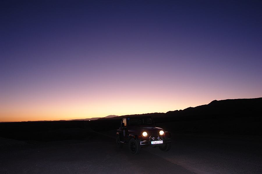 Saturday 30.10.2010 - First night in the desert - and the Jeep didn't start the next morning !!! Pushing the Jeep to start and a long in Calama to get the starter fixed