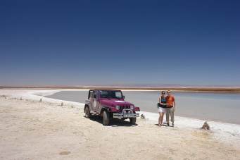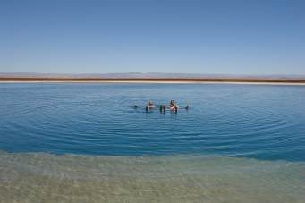 We went swimming in the Laguna Sejar in the Lago Sal de Atacama where you totally float. What a strange feeling! Due to to the high percetage of salt in the water you can easily swim without any movement.