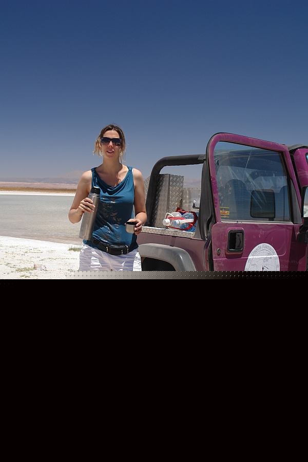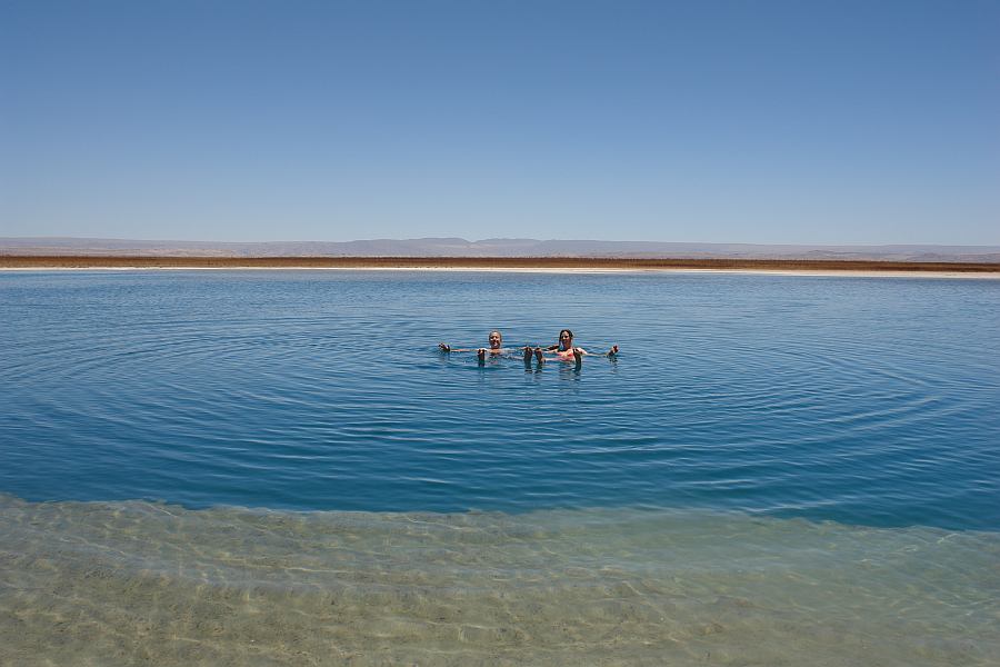 Wir gingen auch in der Laguna Sejar im Lago Sal de Atacama schwimmen, wo man TOTAL schwimmt ohne sich zu bewegen. Ein total komisches Gefuehl!