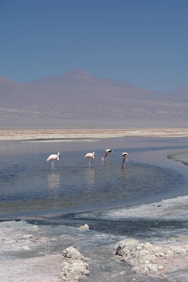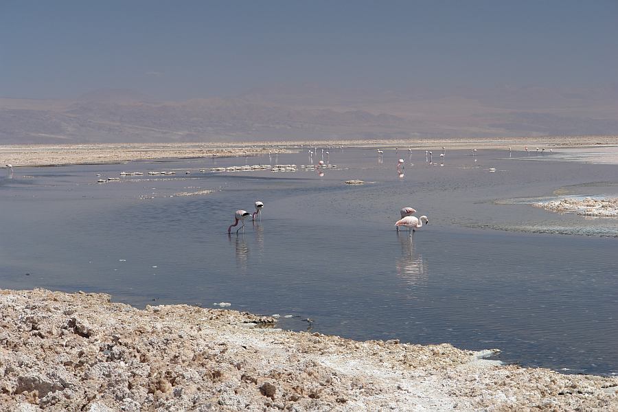 An der Laguna Chaxa in dem Salzsee haben wir auch Flamingos beobachtet. Schoen sie mal frei zu sehen! Wir haben in diesen Tagen auch sichergestellt, dass der Kuehler jetzt ok ist und das Auto fuer die Reise nach Boliven bereit ist... Auch andere bizarre Naturschauspiele gab's zu sehen.