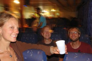 Boarding the ferry from Quellon to Chaiten, was postponed from 3pm to 6pm due to bad weather (when is it not bad here?). The trip was meant to be six hours, however our trip took a bit longer than expected . Around 10pm there was a voice on the radio -only in Spanish, of course, saying that due to the stormy weather we's have to anker in a harbour and would continue our journey to Chaiten only the next day. Chileans didn't seem to be upset at all. That's why it took us quite a while to figure out what had happened. Luckily we are real campers. So we just got our air mats out and slept on the floor. We even managed to smuggle alcohol in. We felt like pupils on a school trip secretly drinking Pisco. The next day at noon we finally arrived Chaiten with 12 hours delay.