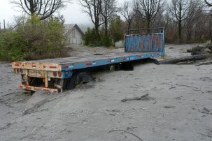 Due to the lava ice melted in the mountains and flooded the town before the ash came.