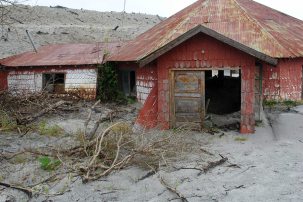 Wegen der heißen Lava schmolz das Eis in den Bergen und flutete die Stadt bevor die Asche kam.