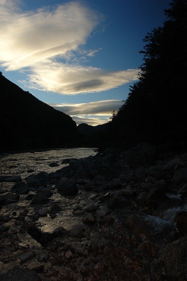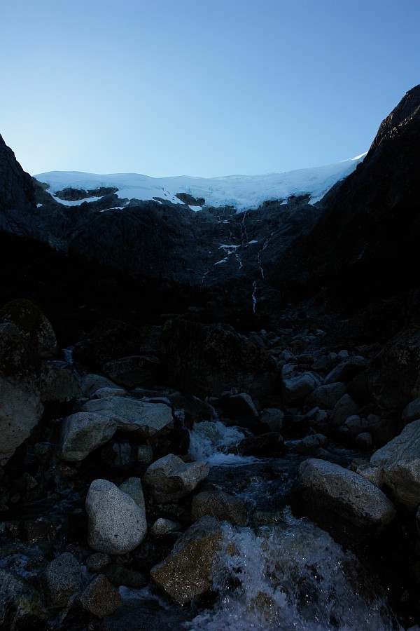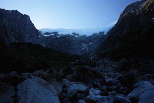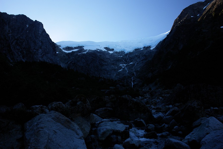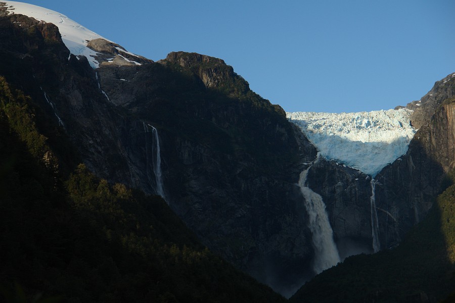 Evening hike to a glacier near Cuesta Queulat, we had to hurry not to get into the darkness.