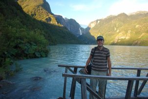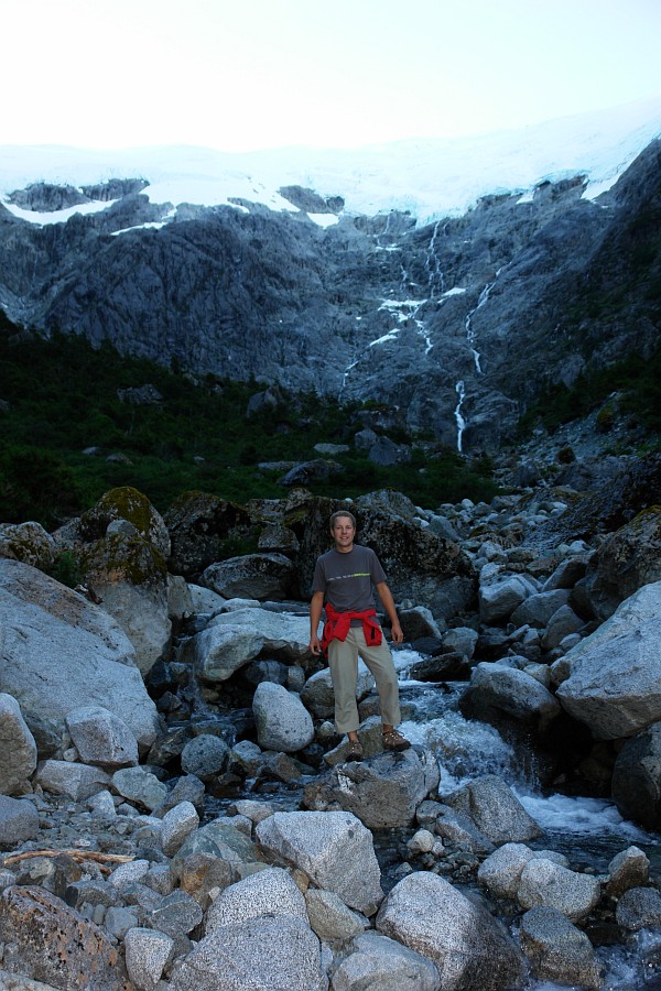 National Park "Parque National Queulat" with glacier "Ventisquero Colgante" - we entred the park and found a nice spot to put our tent up and camp there. Ben couldn't withstand to make a quick walk to lake Tempanos to see the glacier before dinner.