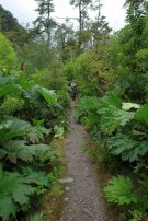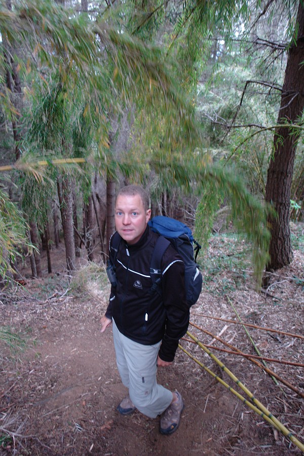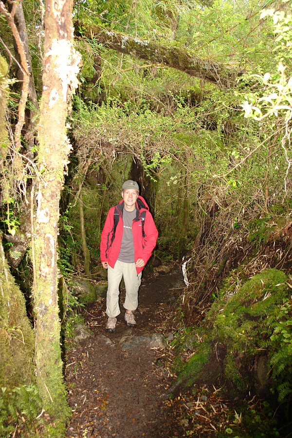 Abendwanderung zu einem Gletscher in der Naehe von Cuesto Queulat. Wir mussten uns beeilen, um nicht in die Dunkelheit zu kommen.