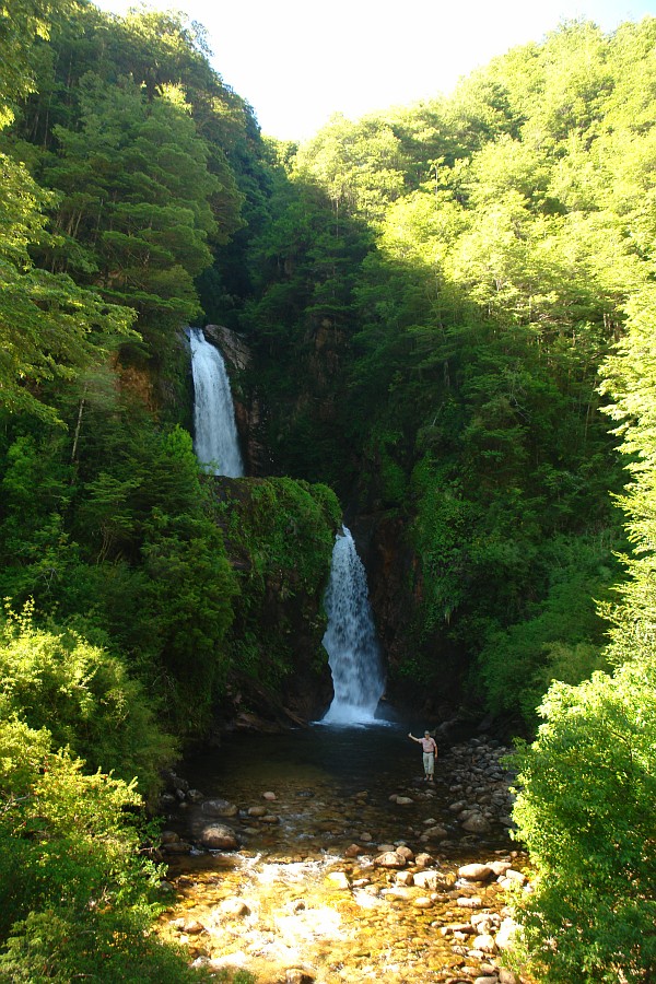 Waterfall Salto La Virgen, river Rio Simpson and waterfall Salto Velo de la Nova.