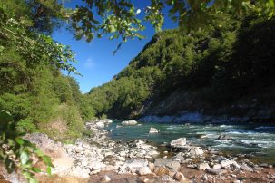 A few kilometers before Coyhaique and directly at Rio Simpson we found this hidden and absolutely perfect camping spot (GPS: S45 28.164 W72 18.380)