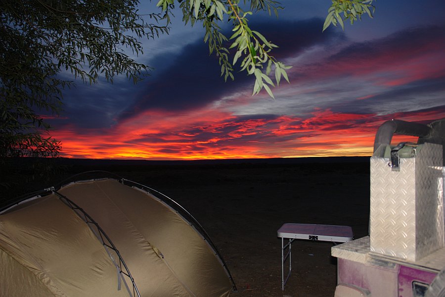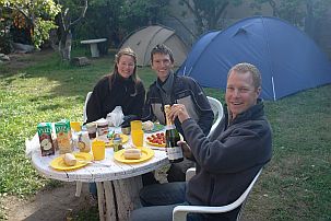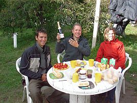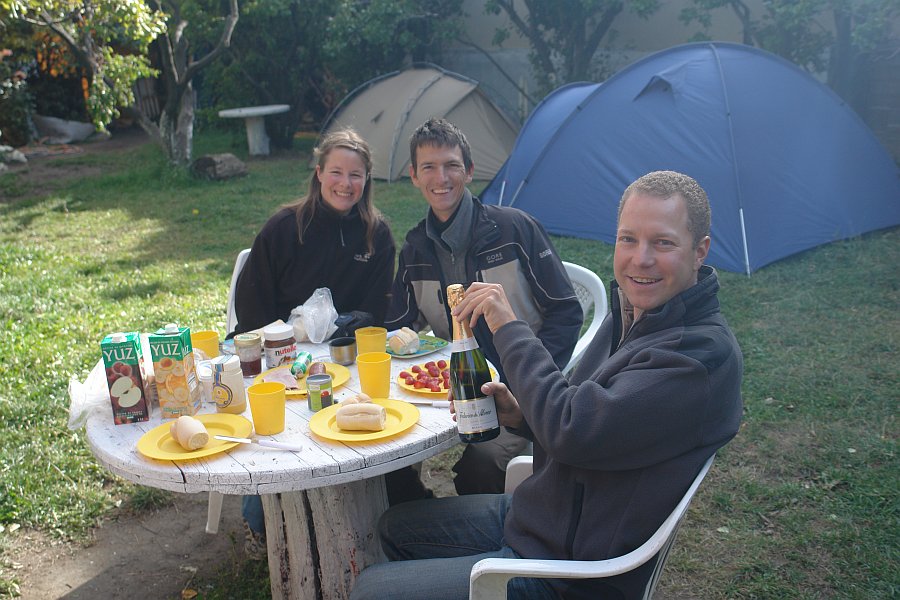 Samstag 26.02.2011 Geburtstagsfruehstueck mit Yvonne und Raphael, Campingplatz inmitten von nichts -mitten einer 'toedlichen' Ueberraschung, Argentinien