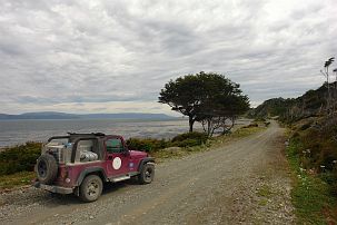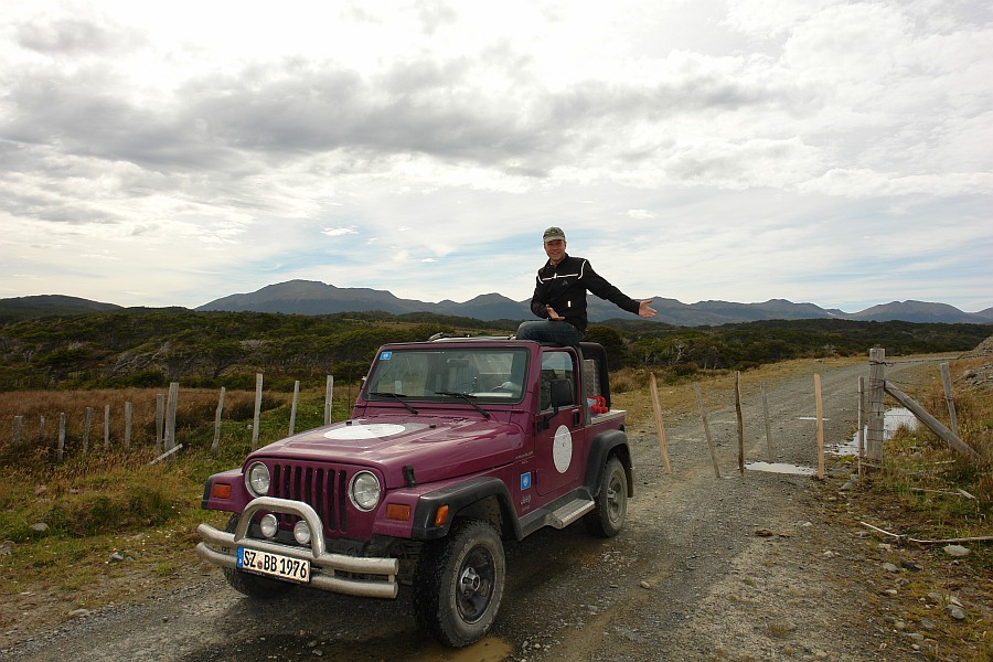 Der definitiv suedlichste Zaun und Leuchtturm an der Magellanstrasse can mit dem Jeep erreicht werden -am Ende der Welt... und dort mussten wir umkehren und wieder Richtung Norden duesen.