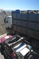 Again we spotted a screw in one of the two front tyres - explaining why we lost so much pressure in this tire yesteray. A "Gumeria" fixed the problem quickly and we could start our trip to the final end of the world.