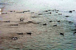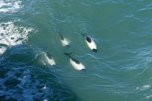 To get to Punta Arenas we had to cross the Strait of Magellan again. On our ferry were mainly trucks loaded with sheep. What a view (and smell)! However this time we were lucky to see black and white Commerson-dolphins. They are the smallest kind of whales in the world. By the way ... the world is sooo small ... the lifeboats on the ship came from town very close to the city where Ben is from.