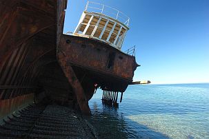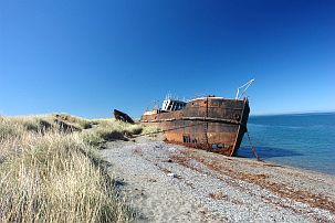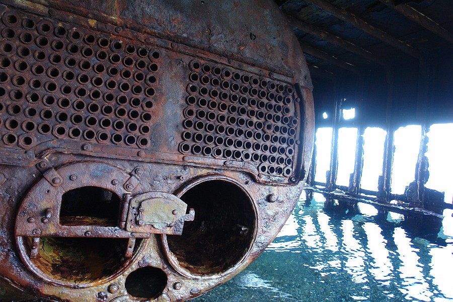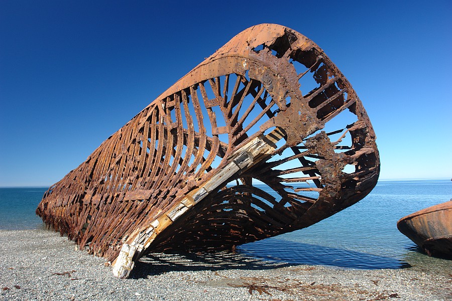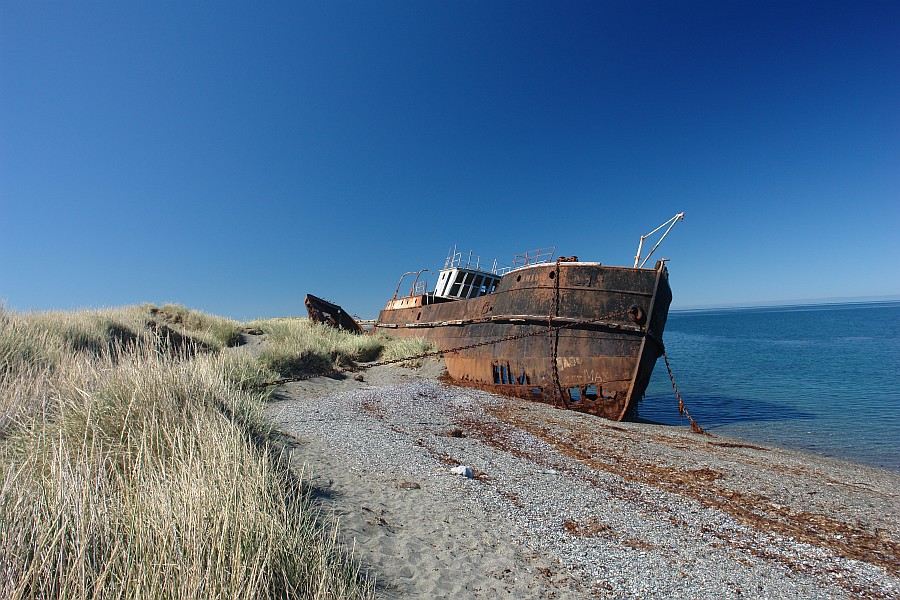 Nachdem wir am anderen Ufer angekommen waren fuhren wir an gestrandeten Schiffen vorbei -ein perfekte Motive fuer Ben's Fotos.
