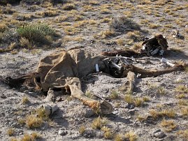 Auf dem Weg in den Norden uebernachteten wir an einer freien Stelle nache einem Fluss. Am naechsten morgen fanden wir heraus, das wir neben einem toten Pferd geschlafen hatten. Zum Glueck waren die Ueberreste schon weit ueber den Punkt hinaus, wo sie riechen.