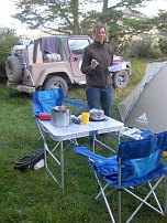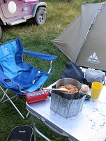 We found a nice camping spot in the forests, and as so often had to dig deep in the aluminium storage boxes to find what we needed and get dinner prepared.