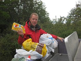Wir fanden unseren letzten Campingplatz der Reise im Wald. Wie so oft vorher, mussten wir in den Aluminiumkisten nach Dingen suchen, die wir zum Abendessenmachen brauchten.
